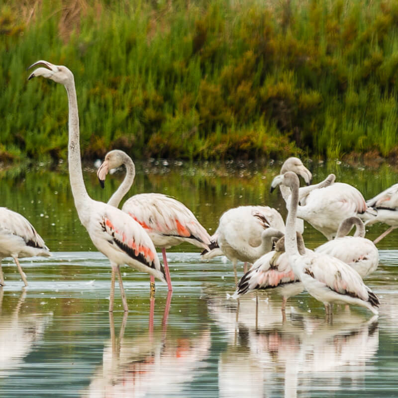 A Reserva Natural do Estuário do Sado, uma das melhores zonas naturais de Portugal, de onde pode observar colónias de flamingos, colhereiros, garças-reais, corvos marinhos entre